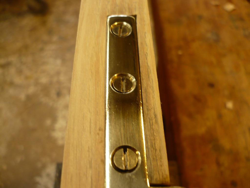 Les serrures sont posées à blanc, le passage de la clef au travers des montants sera réalisé après la mise en jeu et le dégraissage des chants.