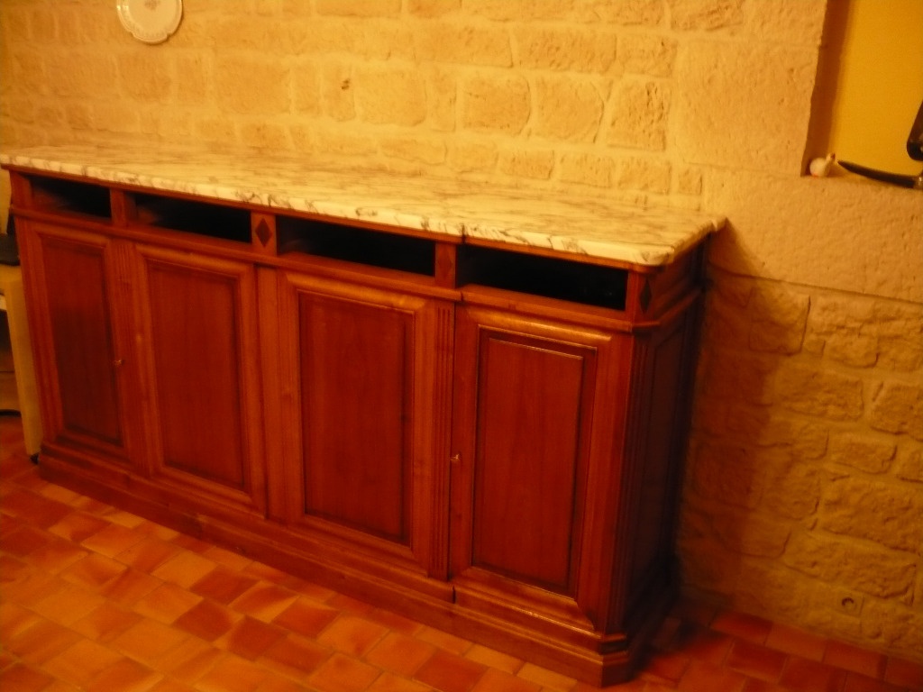 Il me reste à trouver un peu de temps pour aboutir les tiroirs,afin de compéter ce pas à pas. En attendant je remercie Zéloko pour pour ce site et les opportunités qu'il offre. Également Milan 1951 que j'avais contacté alors que cette enfilade était encore un projet .Il avait répondu favorablement à ma demande de sculpture sur le faux meneau entre les deux portes centrales. Ça ne s'est pas produit de mon fait.