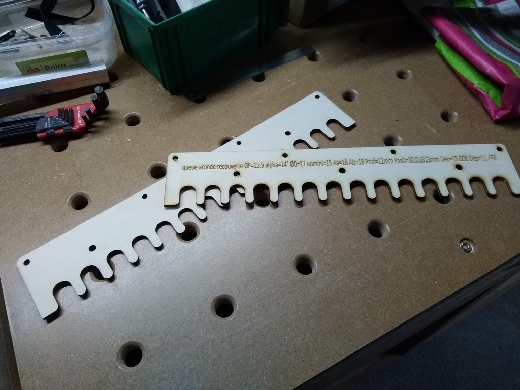 Ayant élaboré ma propre méthode de calcul pour le calcul d'un peigne à queues d'aronde recouvertes, je commence par ce peigne afin de faire des essais.