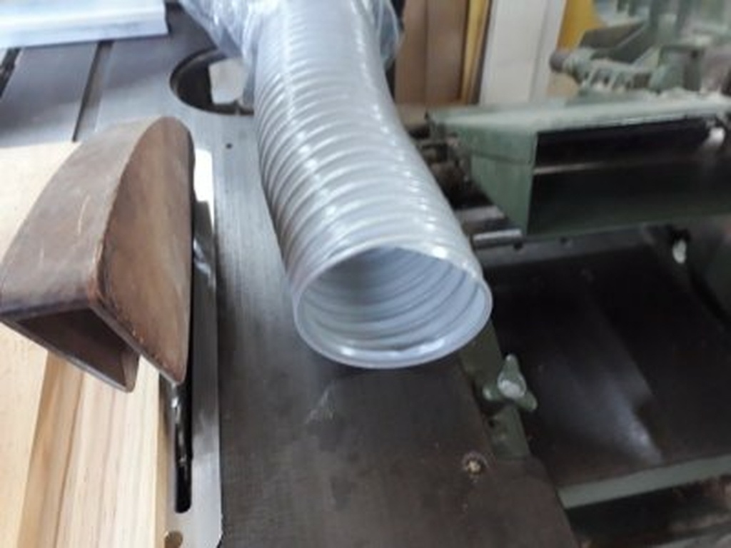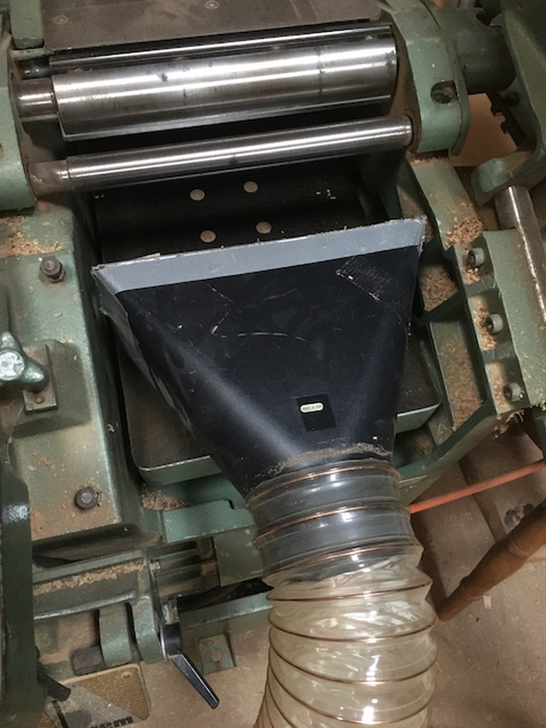 Le pas à pas sur l'extraction était très intéressant et très utile. J'ai un système similaire sur ma machine mais j'ai utilisé un adaptateur 250mm/100mm (CVA400-50-122) que j'ai acheté chez Record Power en Angleterre pour environ 15 euros. (Voir mes photos) Je ne l'utilise que sur la raboteuse et la dégauchisseuse jusqu'à présent, mais j'aime beaucoup les idées d'Ara pour l'adapter à la scie. Vous pouvez voir sur les photos comment il s'adapte sur la dégauchisseuse et la raboteuse. Il y a 4 aimants en néodyme collés dans des évidements peu profonds de l'adaptateur avec de la colle époxy. Ceux-ci maintiennent l'adaptateur en place à l'intérieur de la hotte d'extraction lorsqu'il est en position de la raboteuse et sont suffisamment solides pour supporter le poids du tuyau d'extraction. Il ne s'est jamais détaché pendant l'utilisation. Pour le dégauchissage, je fais simplement pivoter l'adaptateur de 180 degrés et les aimants le maintiennent très fermement en place sur le lit de la raboteuse, qui, comme celui d'Ara, est surélevé à environ 100 mm. Je pense maintenant (merci à Ara, encore une fois) à utiliser l'adaptateur fixé par ses aimants verticalement sous le port de poussière pour la scie. Tout ce dont j'ai besoin est une sorte de capot adaptateur à angle droit pour relier les deux ensemble.