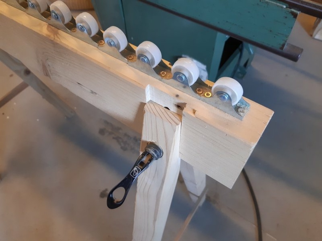 Voici des images plus détaillées du tréteau à roulettes, qui me sert d'extension au chariot pour l'usinage en bout des pièces longues et pour les panneaux.