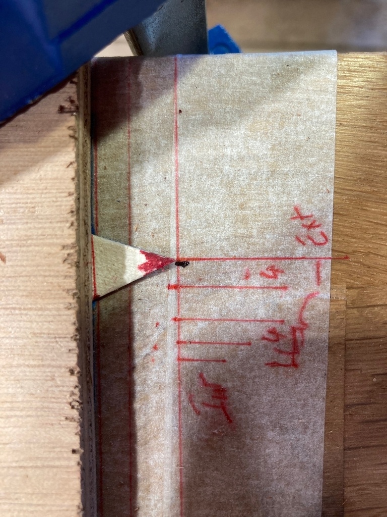 -- 3b) cintrées en incrustation des têtes et pieds de colonne : aïe aïe... - 4) les filets (4*2 rabotés à 1 après collage) en contour intérieur des plates-bandes : portes et flancs.