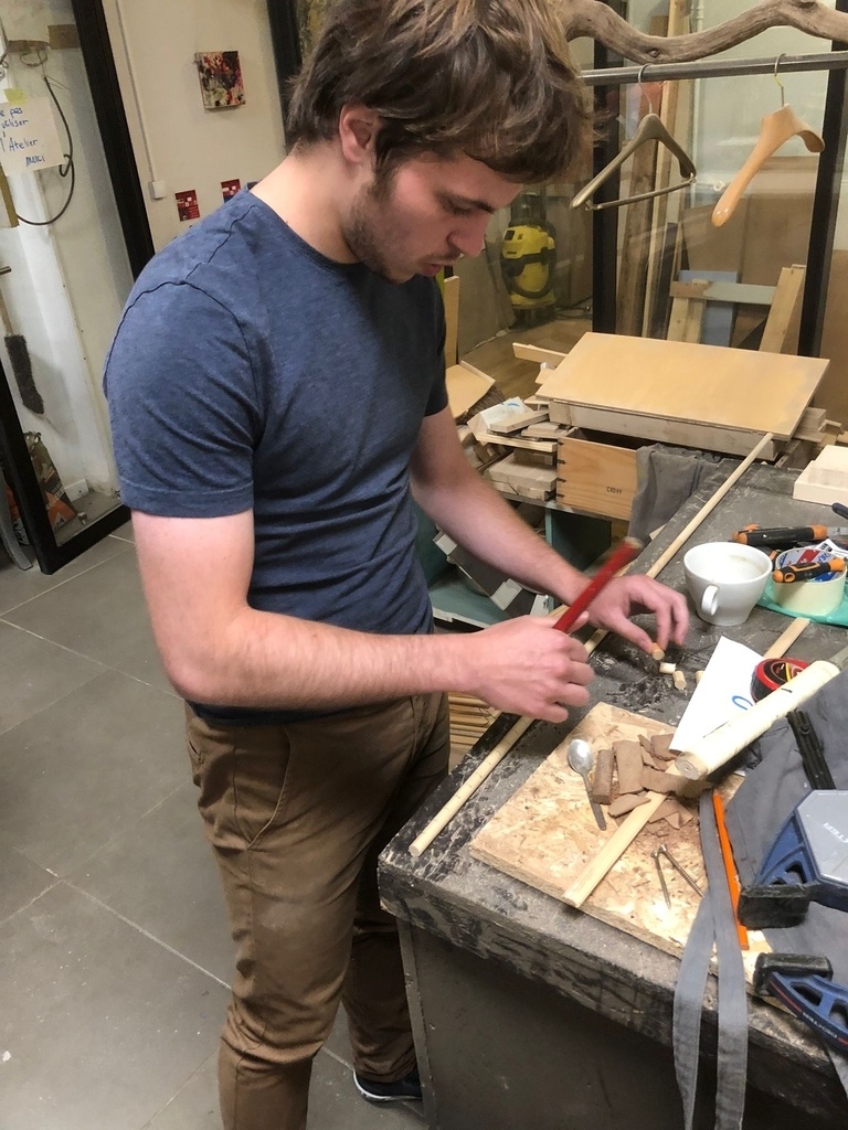 Pour cela, nous mettons à contribution le client (curieux de s'initier à la menuiserie) et des scouts de passage ;)