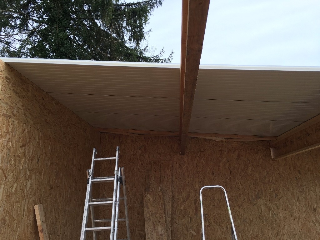 Avantages de la première solution, tout est déjà en place on continue simplement sur la lancée, avec un doute majeure sur la faisabilité de l'ouverture une fois les portes contreventées, isolées et bardées .... ça va peser le poids d'un âne mort!! Et la sécurisation reste encore un peu floue.