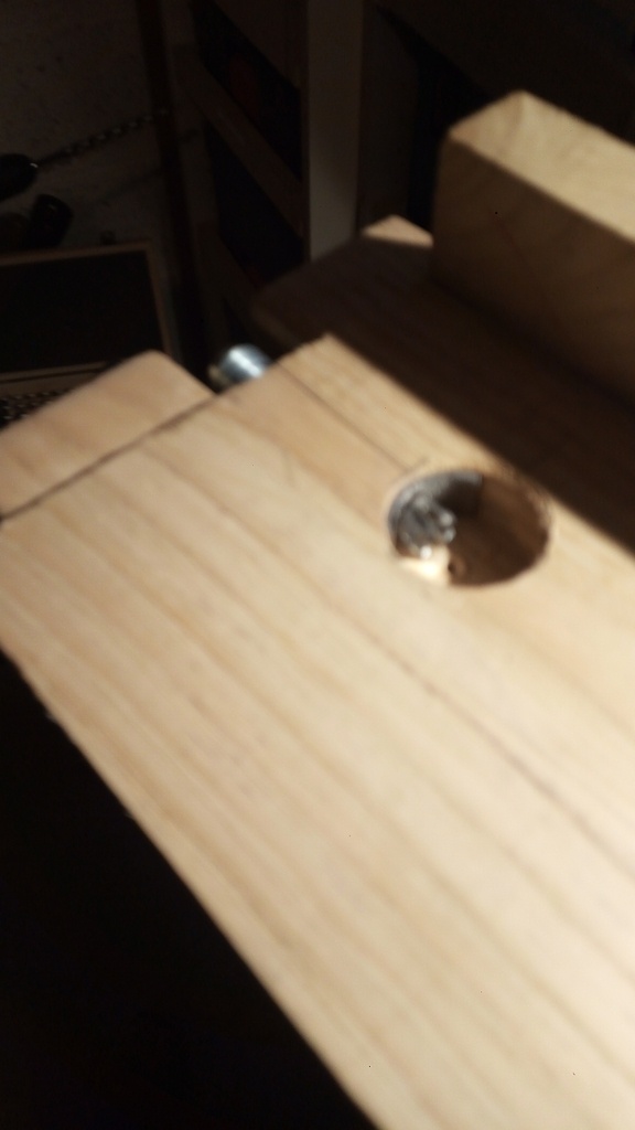 Puis préparation des supports avec un trou étagé pour passer une vis et la noyer sous un bouchon.