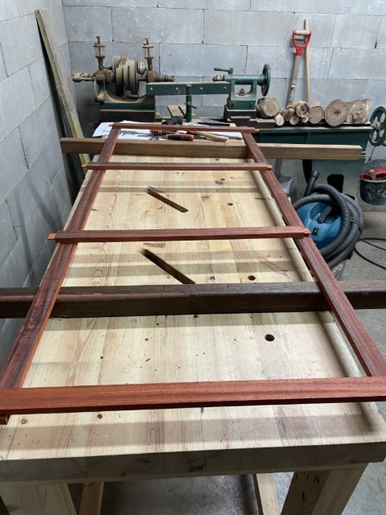 Dernière info, j'étais limité par l'épaisseur du cadre à cause de la présence d'un screen solaire extérieur qui coulisse devant tout le vitrage. J'ai travaillé avec des bois de 15mm fini.