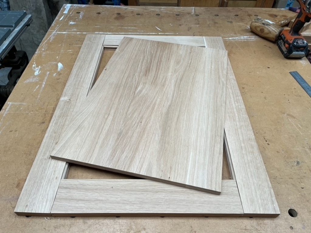 le panneau de porte est traité au Rubio avant montage pour traiter la partie qui rentre dans la rainure des montants de porte.