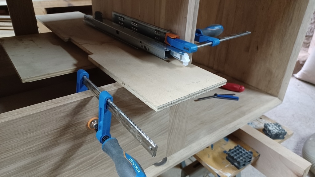 - La mise place des glissières des tiroirs.