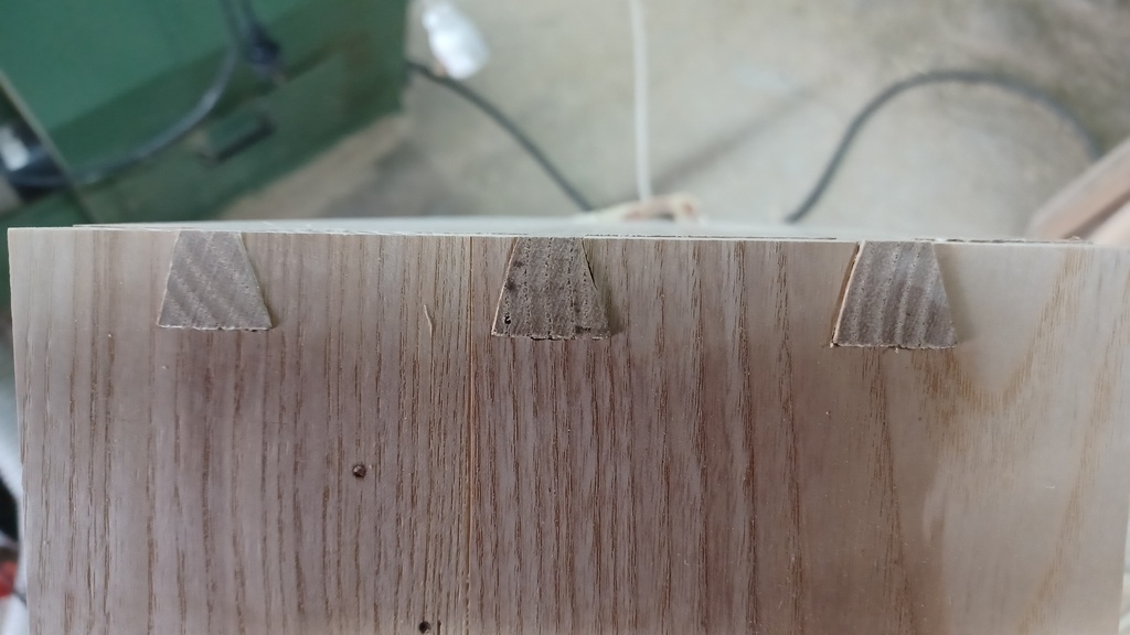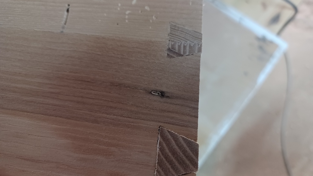 Je pensai que ces parties seraient cachées. Mais j'avais oublié que la lamelleuse avait besoin d'une surface de référence, coté intérieur, et non à l'extérieur