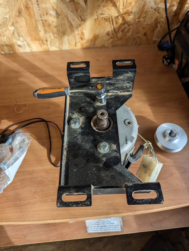ThierryMAT je n'ai pas mieux que ça malheureusement, ce que je sais, c'est que j'ai du rentrer la poulie en force (la nouvelle). Sur les photos il manque une entretoise entre le moteur et la poulie (elle n'est pas sur les photos mais elle est bien là). Quoi que maintenant j'ai un doute