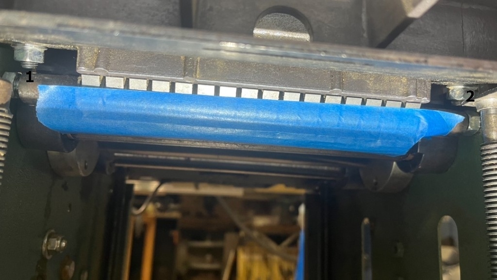 La table de rabotage étant désormais de niveau, il reste à contrôler/régler le cylindre porte-fers par rapport à la table de rabotage.