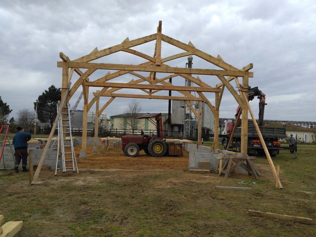 Pour le levage je pense demander de l'aide à un charpentier du coin, sinon mon fournisseur de tuiles m'a déjà levé des fermes avec son camion grue.