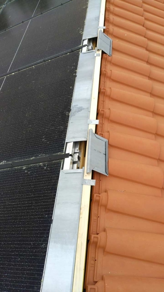 La suite après une longue pause, pose d'un genre de larmier en zinc sur les planches du bas avant de poser les autres, ça évite d'avoir à croiser les joints.