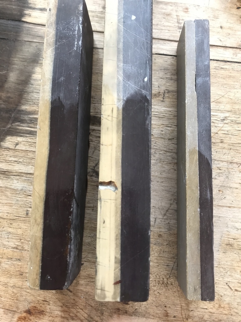 En effet, la majorité des ventes était principalement destinée aux barbiers, à l’affutage des rasoirs coupe choux, d’où la taille souvent petite des pierres vintage, inutilisables pour les lames de rabots (voir pierre de barbier en photo)