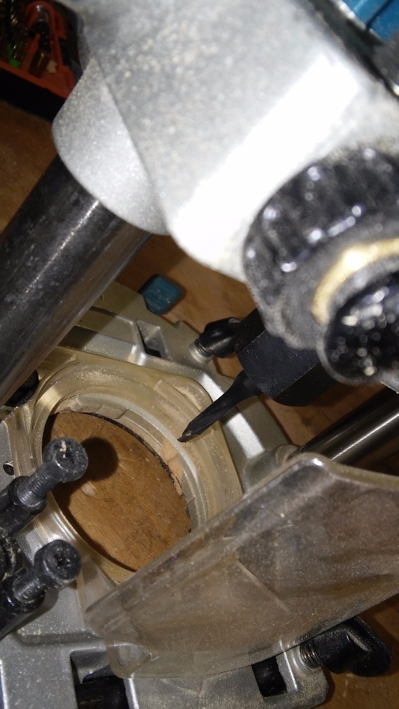 Une fois les languettes de devant mises a fleur, j'ai défoncé dans chaque demi bloc un demi rond qui accueillera une tige en alu servant au passage de l'alim. Puis les demi blocs sont collés. Après une demi journée, les rainures des cotés ont été défoncées et même étape que précédemment pour insérer les languettes (mise a fleur au rabot, puis ponceuse orbitale). On colle, enfin, le bloc sur le socle et puis on vernis.