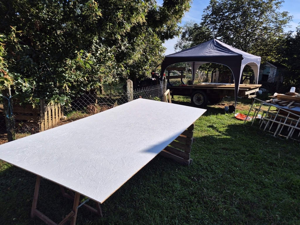 Bien vu mofran, c'était bien en perspective de ce projet. Et j'ai apprécié de les avoir, au-delà de ce que j'espérais. Pour travailler (et souvent même bourriner !) sur de grosses pièces, c'est tellement pratique d'avoir des tréteaux qui répondent aux coups de marteau et qui ne bougent pas d'un poil !