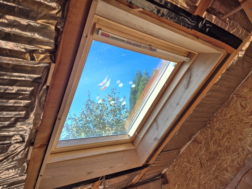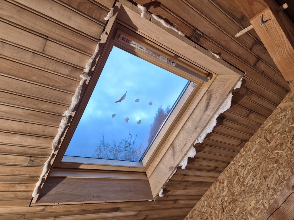 Ce versant (sud) contient aussi un Velux. La pose est à priori un peu intimidante quand on ne l'a jamais fait, mais finalement il n'y a rien de sorcier.
