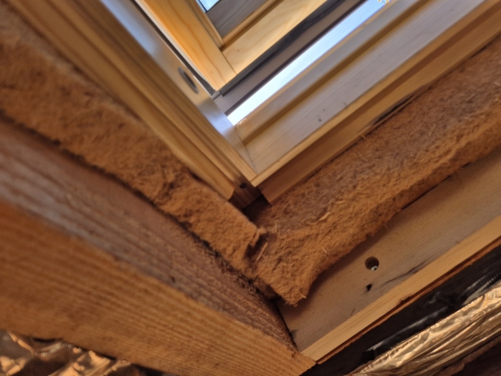 J'ai mis un peu de mousse popo pour l'étanchéité à l'air (c'est un grand mot) entre la structure des murs et la charpente.