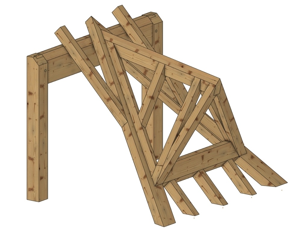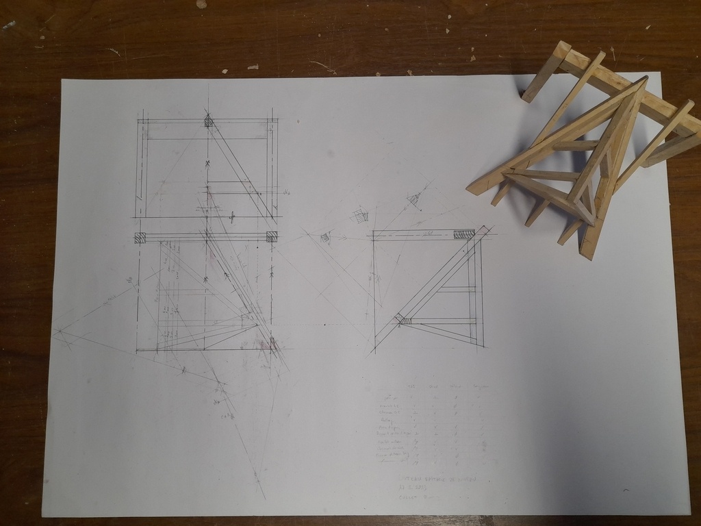 Maquette "simple" sur le papier : un poinçon, deux arêtiers, une panne et un empannon.