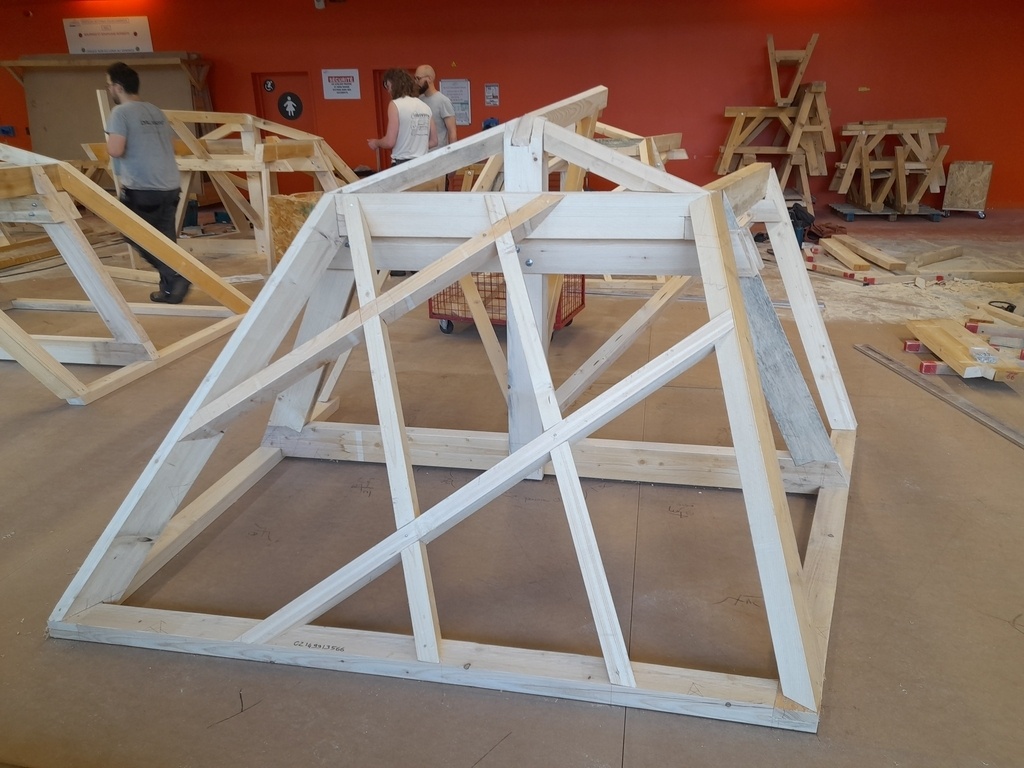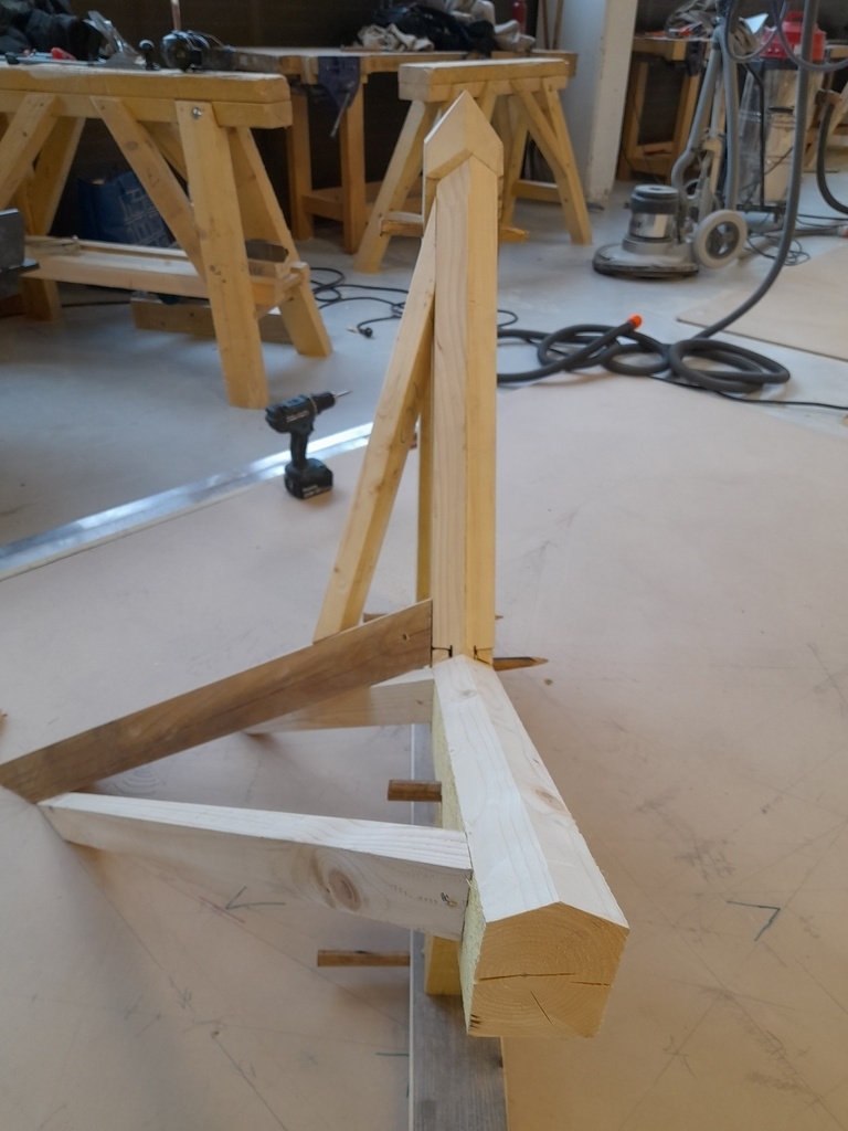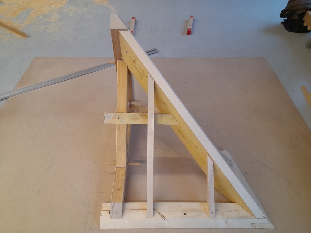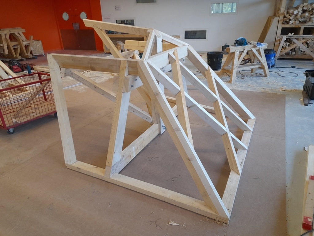 Maquette réalisée à la maison dans mon atelier avec des bois récupérés suite au démontage d'un étaiement (quasiment 8m3 de sapin à évacuer !).