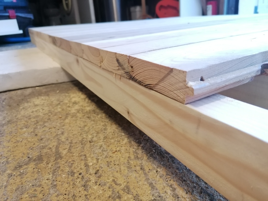 ( Pour info, tout le cadre est fait a partir de lambourde en Pin (1/2 chevron) acheté chez un revendeur local (Gedibois pour ceux qui sont de Clermont-Ferrand