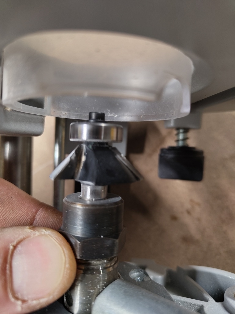 Le cassage des arrêtes à la défonceuse avec une mèche chanfrein à 45°.