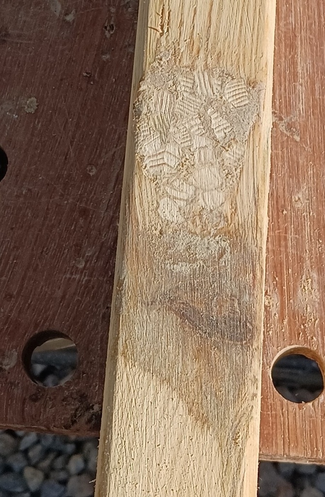 Toutefois il y a un peu plus de travail sur les longerons latéraux avec une finition du biseautage au ciseau.