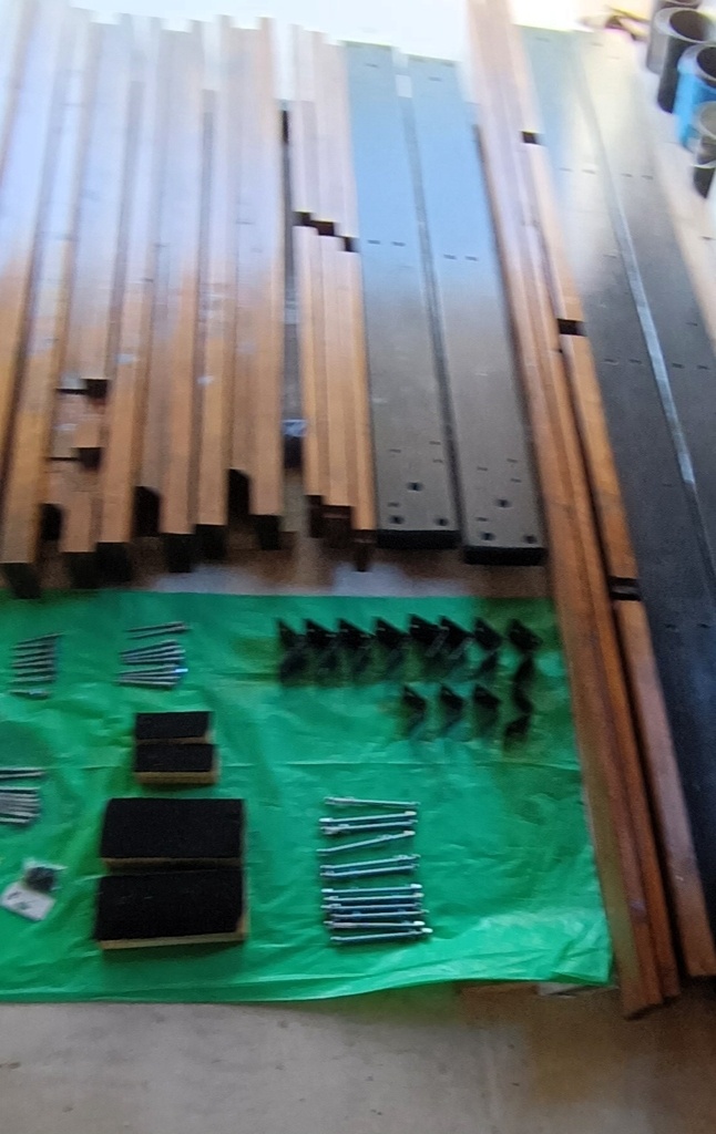 A ce stade avec seulement les 8 tirefonds des longerons et les 12 boulons des poteaux moisés, la structure est déjà très stable (environ 330 kg) rien ne bouge c'est rassurant.
