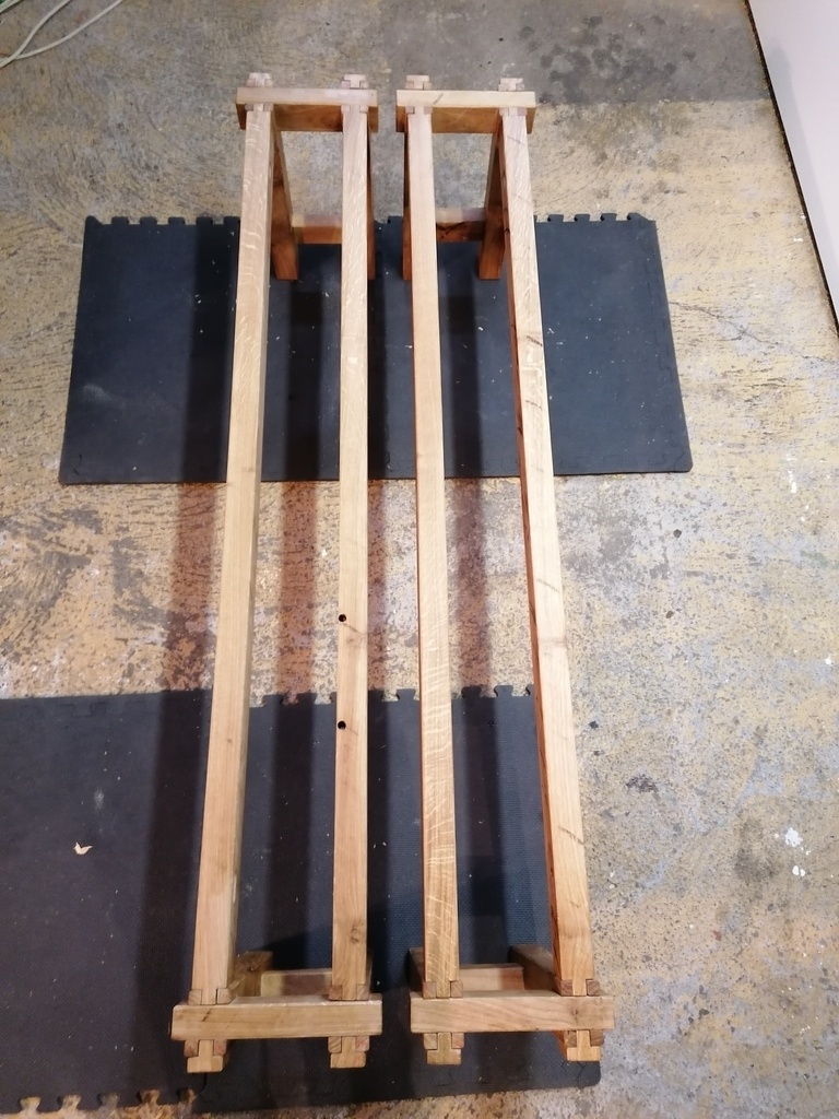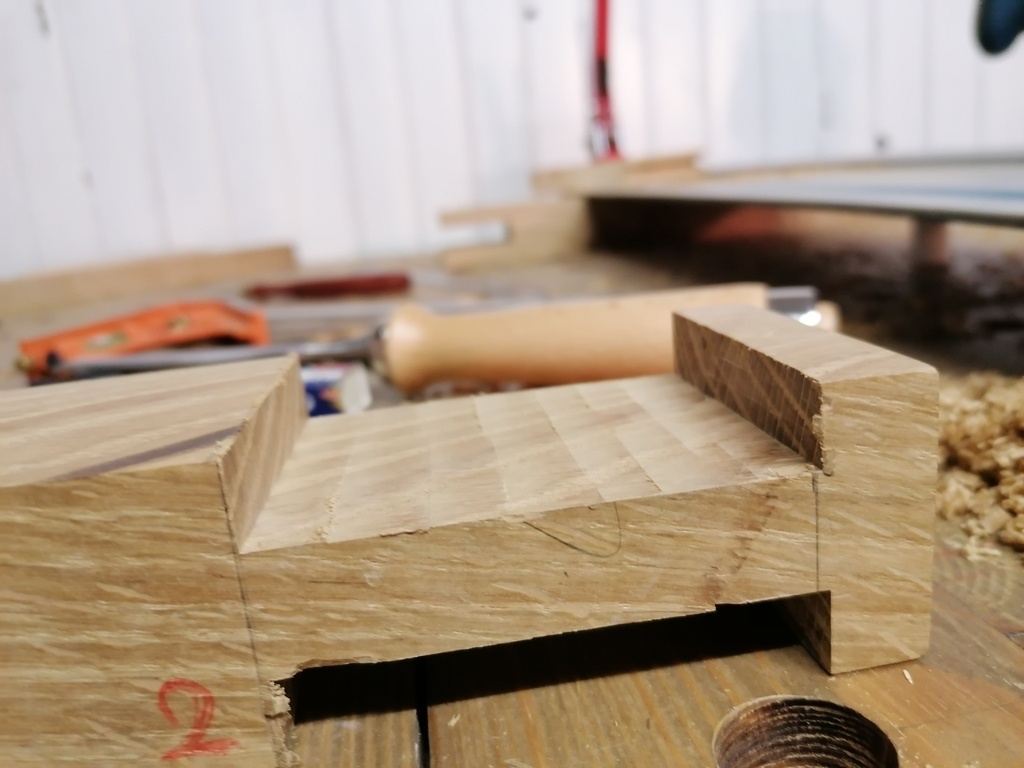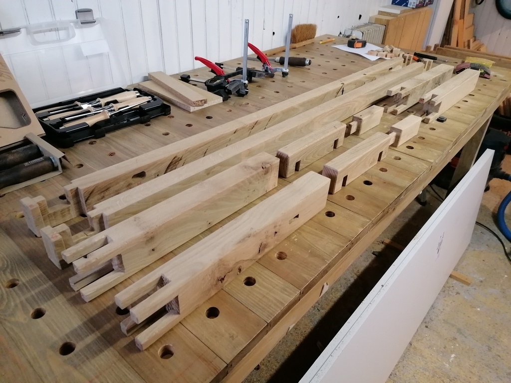 A la base, après avoir déligné mes morceaux des plateaux de chêne, je pensais qu'en 2 semaines de travail j'aurai fini (en y bossant tous les jours, a la cool 4-6h/j)... bon j’étais loin du compte