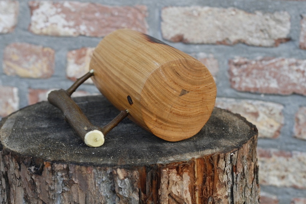 Il est ensuite venu le temps de choisir et installer une poignée sur la chope. J'en choisis donc une dans un stock amassé au fil du temps; lorsque je tombe sur une branche de la bonne forme, je la récupère et la garde en réserve.
