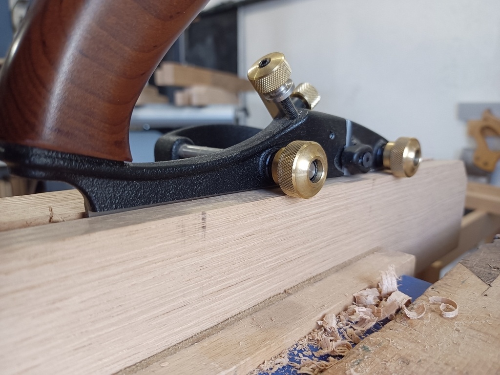 La troisième solution, pour l'instant, est la meilleure. Il ne me reste plus qu'à faire une passe de finition sur les feuillures. J'hésite à me procurer un guillaume à angle faible, soit sous forme classique, soit sous forme de rabot de paume. L'idée est de garder le guillaume en bois pour enlever de la matière (même s'il bourre facilement) et avoir à côté un guillaume de finition, avec le fer réglé au minimum en sortie.