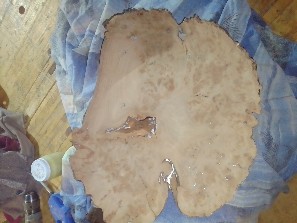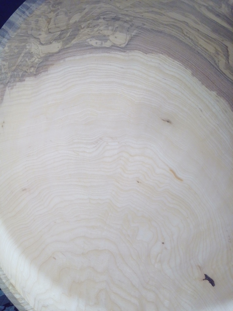 Après 6 semaines de séchage (3 au frais dans l'atelier, puis 3 dans la maison) ; la pièce semble stabilisée. L'avantage d'une pièce fine comme celle ci c'est que le bois a une certaine souplesse, et les déformations ne créent pas trop de tensions aboutissant à des fissures.