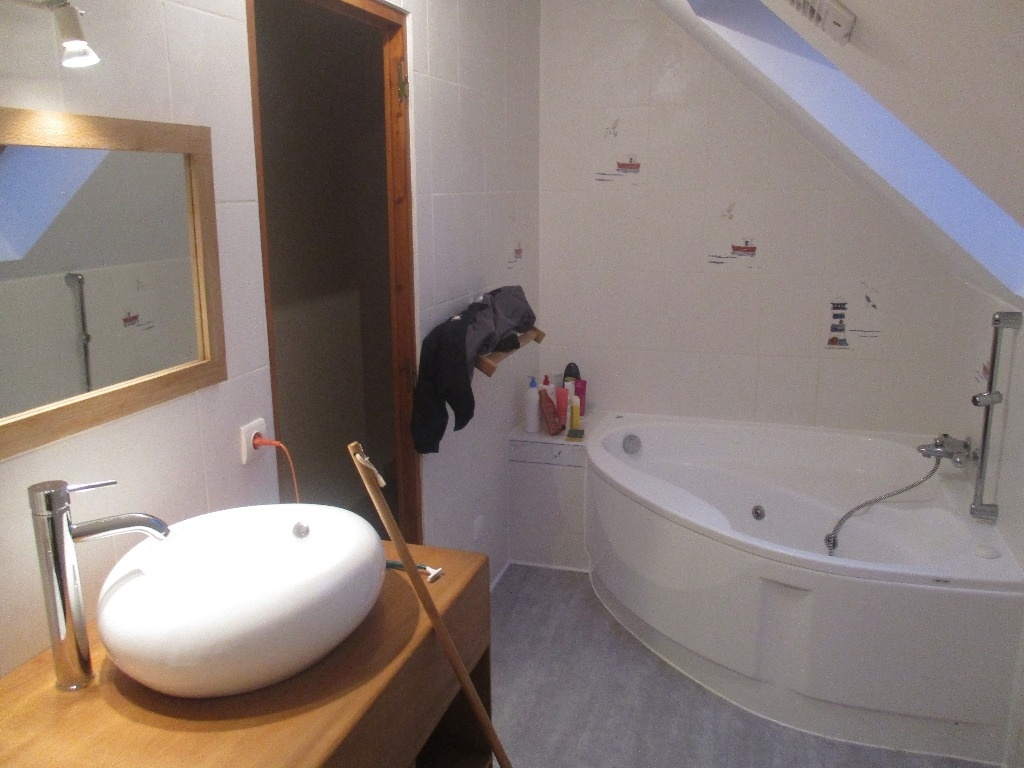 J'ai eu très peu de temps pour prendre des photos pendant la pose malheureusement. En voici de la salle de bain terminée ;) Elles ne sont pas top car je ne dispose pas d'enormement de recul...
