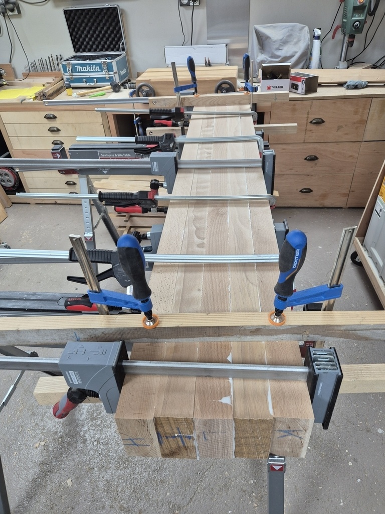 Les plateaux seront collés à plat joint sauf les 2 morceaux de devant qui sont les plus travaillés et assemblés dans un 2ème temps :