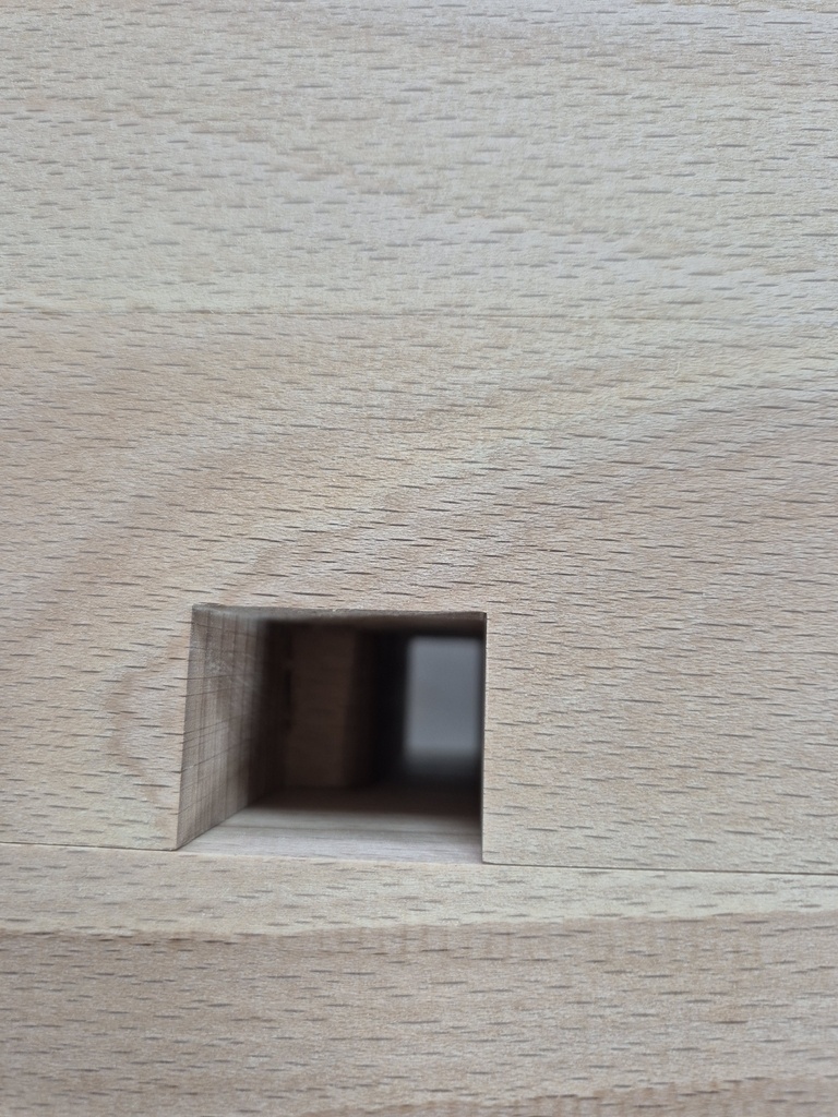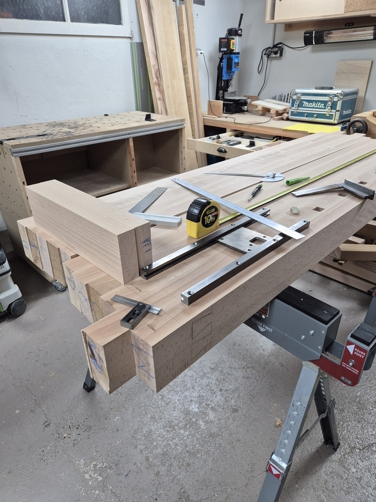 Je pourrai ensuite marquer et usiner les mortaises des pieds à faire dans les plateaux.