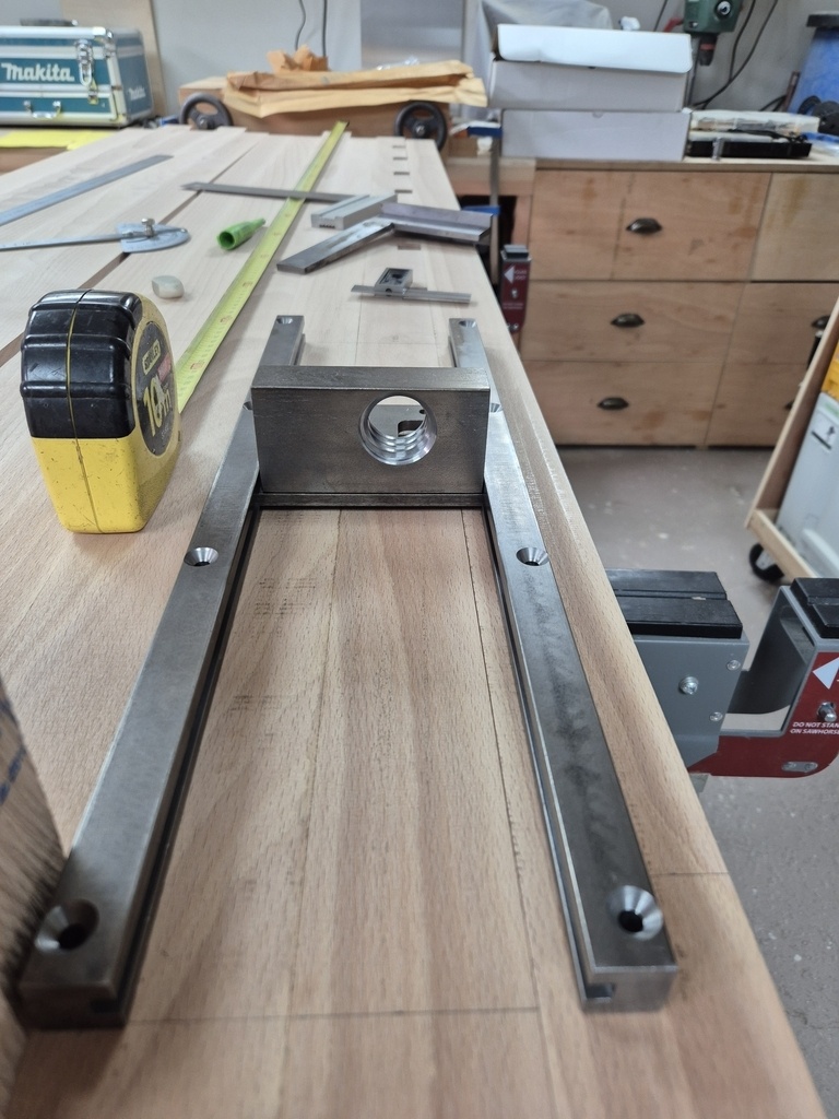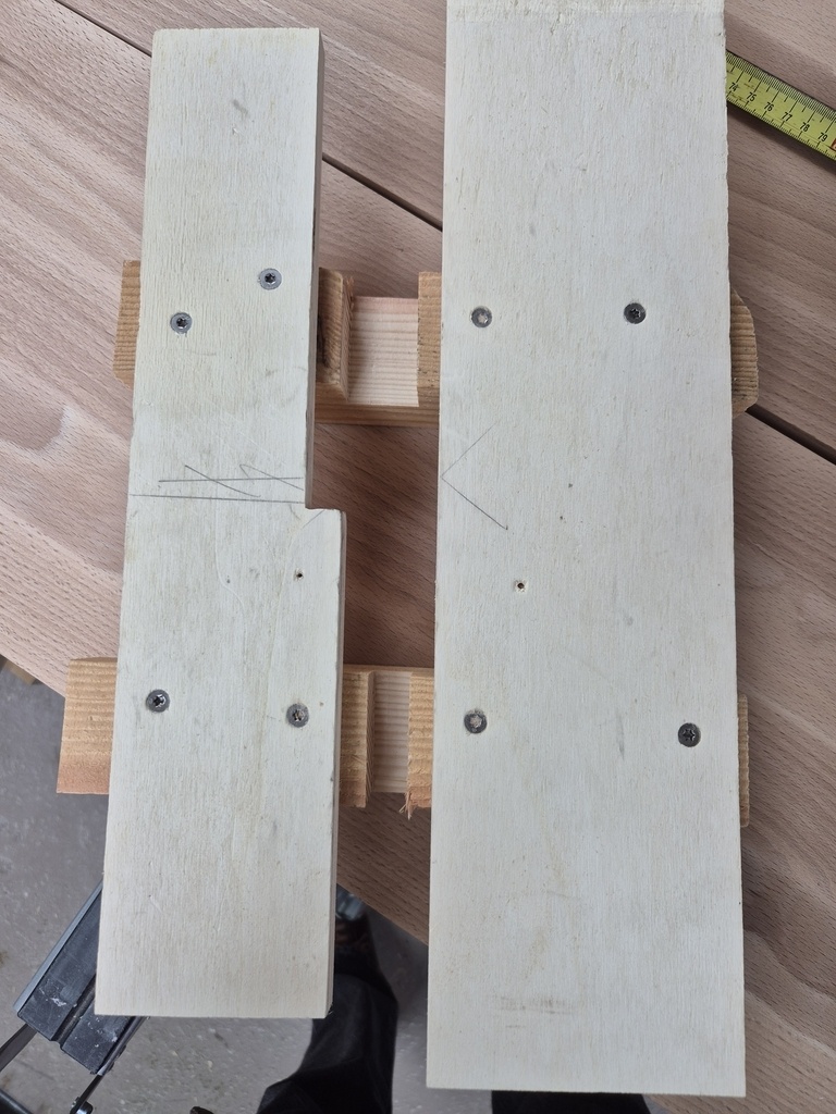Une fois ceci fait, je pourrai marquer et percer les plateaux pour les inserts à viser qui les fixeront sur les traverses hautes.