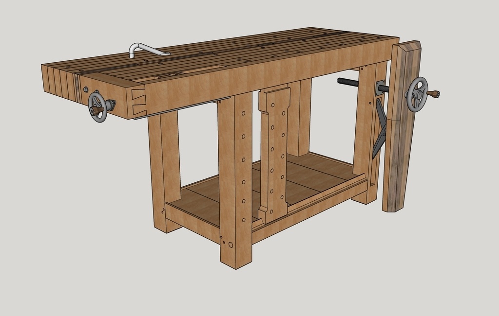 J'entreprend la construction d'un "vrai" établi de menuisier. Je ne disposais jusqu'ici que d'un établi de type mft, certes assez pratique (fixation, rangement, ...) mais complètement inadapté au travail aux outils manuels : tout bouge, tout vibre.