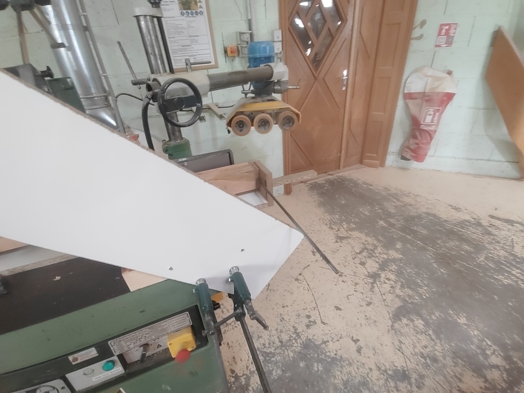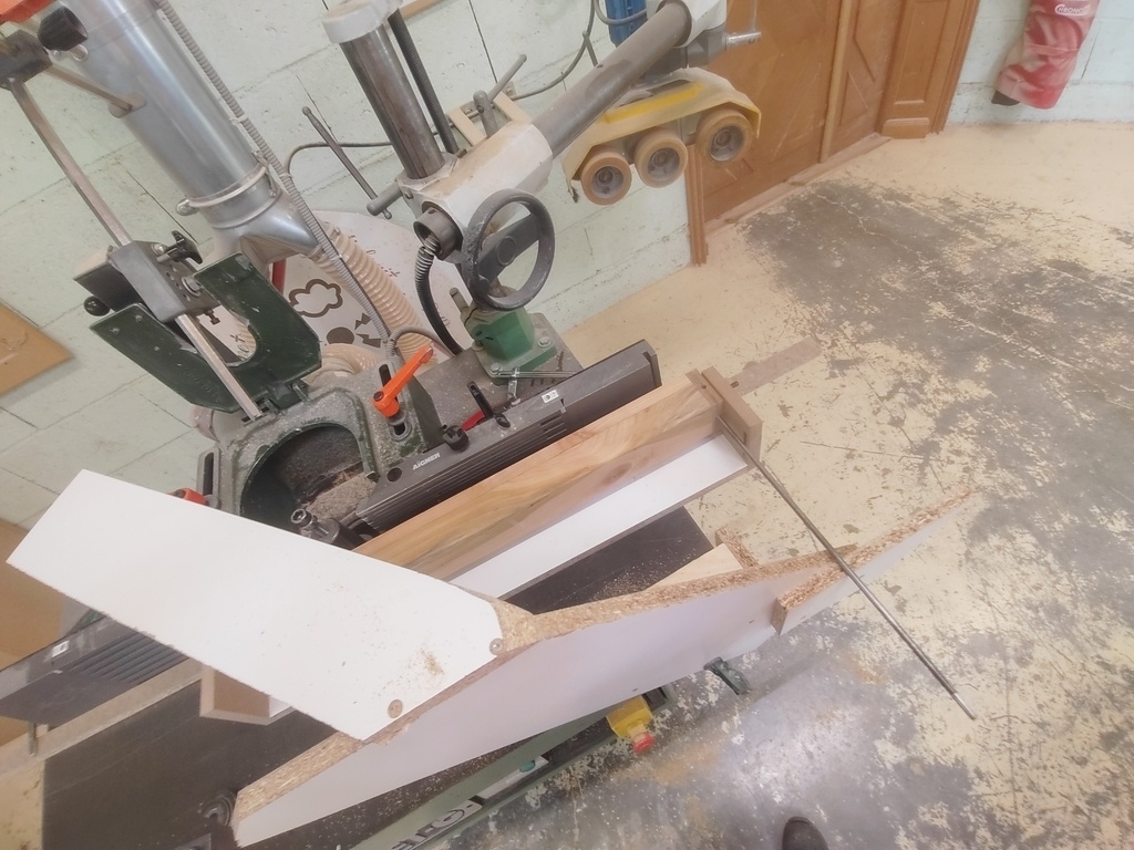 La tige suivant une arête, j'ai dû dégraisser le chant de ce deuxième panneau. Un bon coup de râpe et le tour est joué.