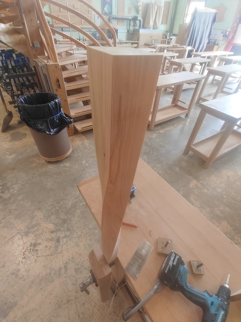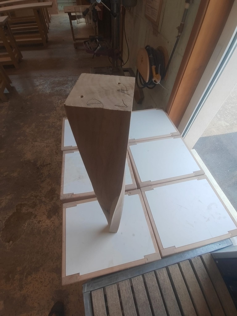 -Démarrer avec une section de 60² sur laquelle on a collé une plaquette de 6mm d'une autre essence, pour faire un contraste au niveau de la torsion. Egalement en attente de test.