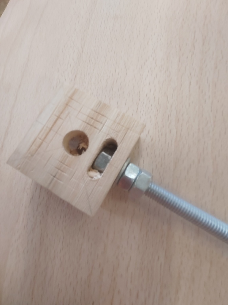 J'ai décidé de faire une pièce où je peux intégrer un écrou, pour serrer une tige filetée dessus, ce qui devrait donner la rigidité nécessaire.
