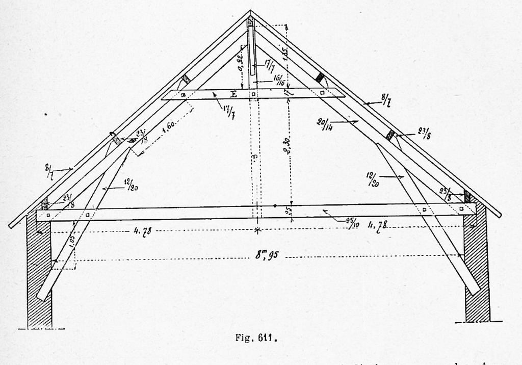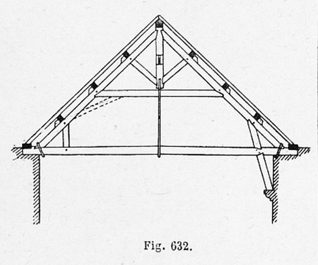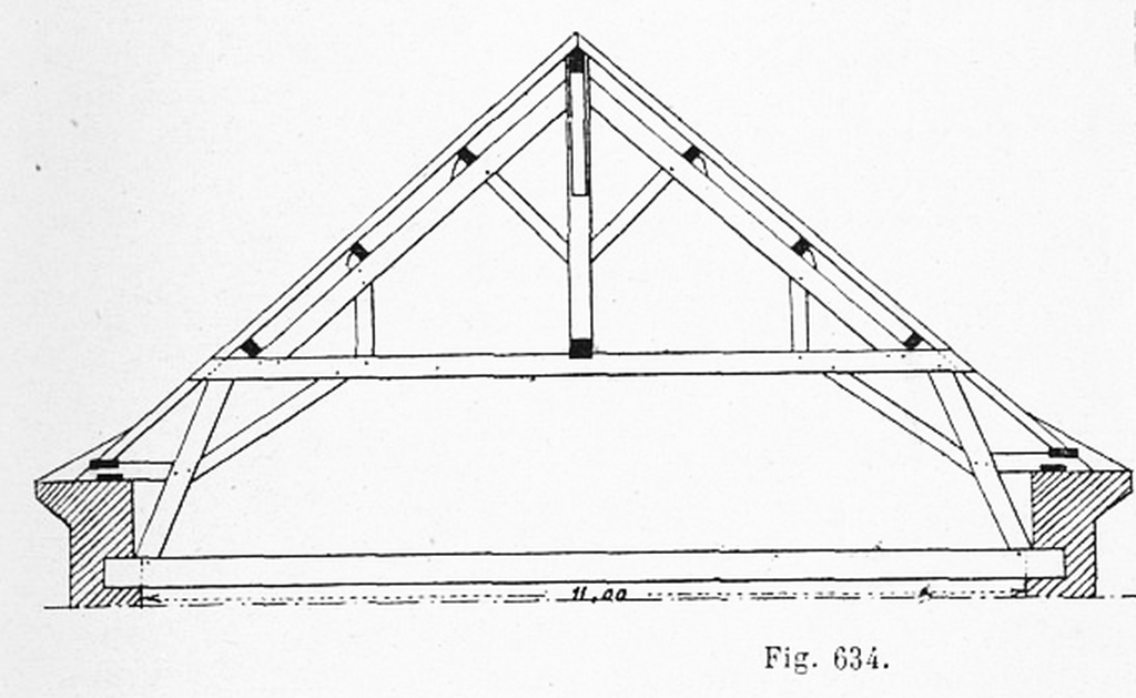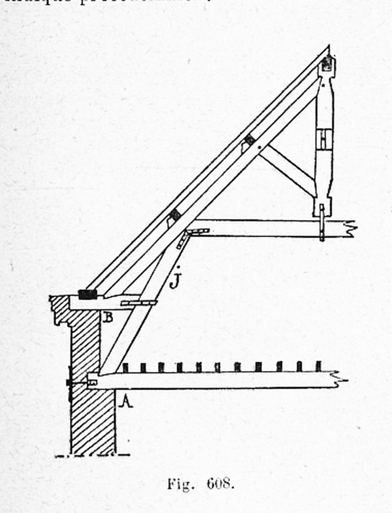 Exemple : fig. 624, fig. 634. Dans ces cas là, les arbalétriers ne descendent pas jusqu'à la base de la pente du toit : ils ne supportent pas la panne sablière, laquelle repose directement en haut du mur.