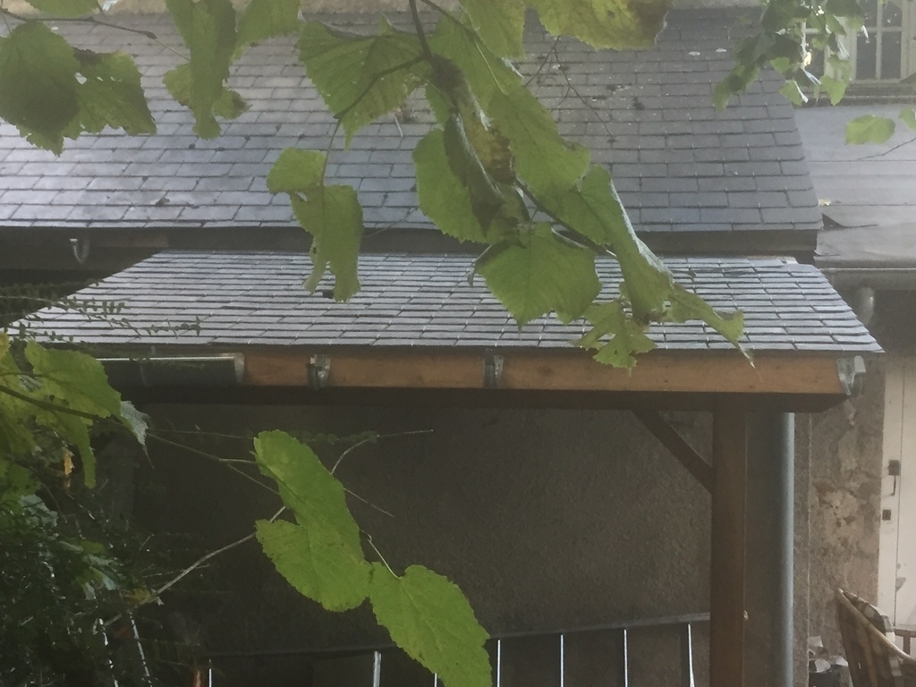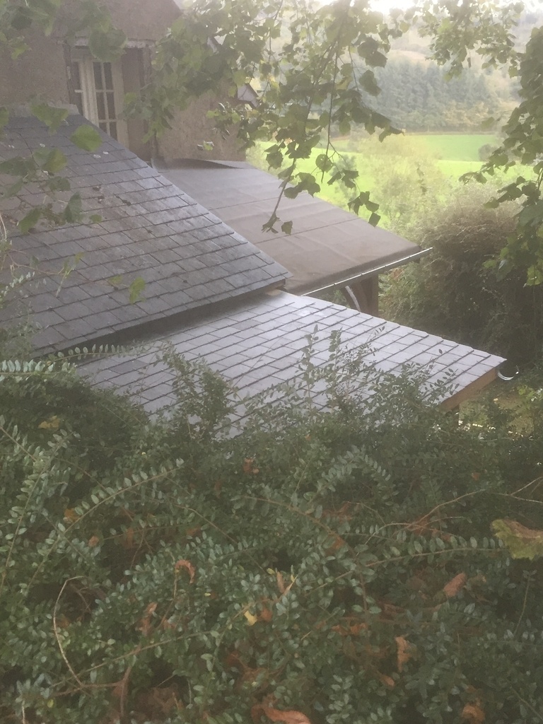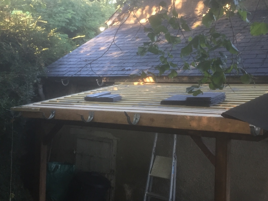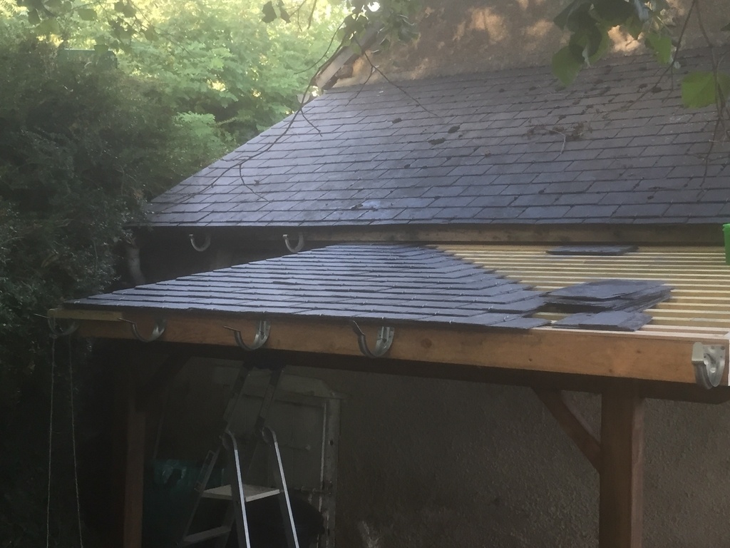 Sur le côté de l'auvent d'entrée j'avais prévu de faire une couverture pour le bois ; et c'est reparti .