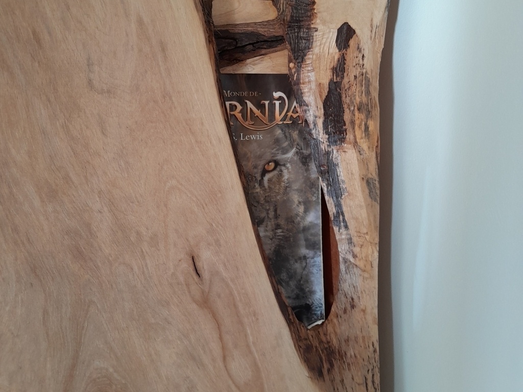 Je suis nul en finition, donc je fais ce que je peux. Bien évidemment mon épouse préfère sans rien (ahhh le blanc...), mais quel dommage de ne pas faire ressortir les contrastes du noyer ! Surtout que l'écorce est plutôt grise.