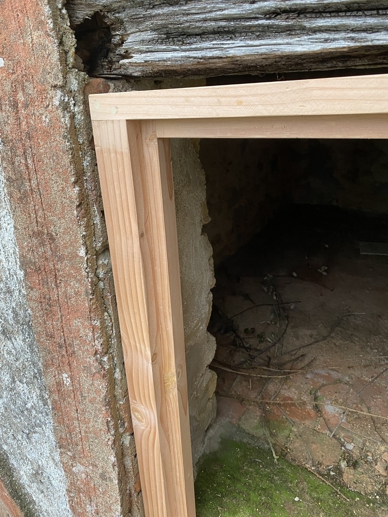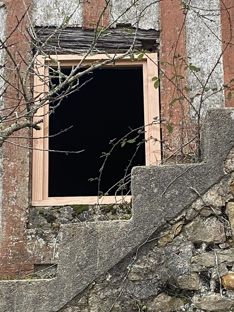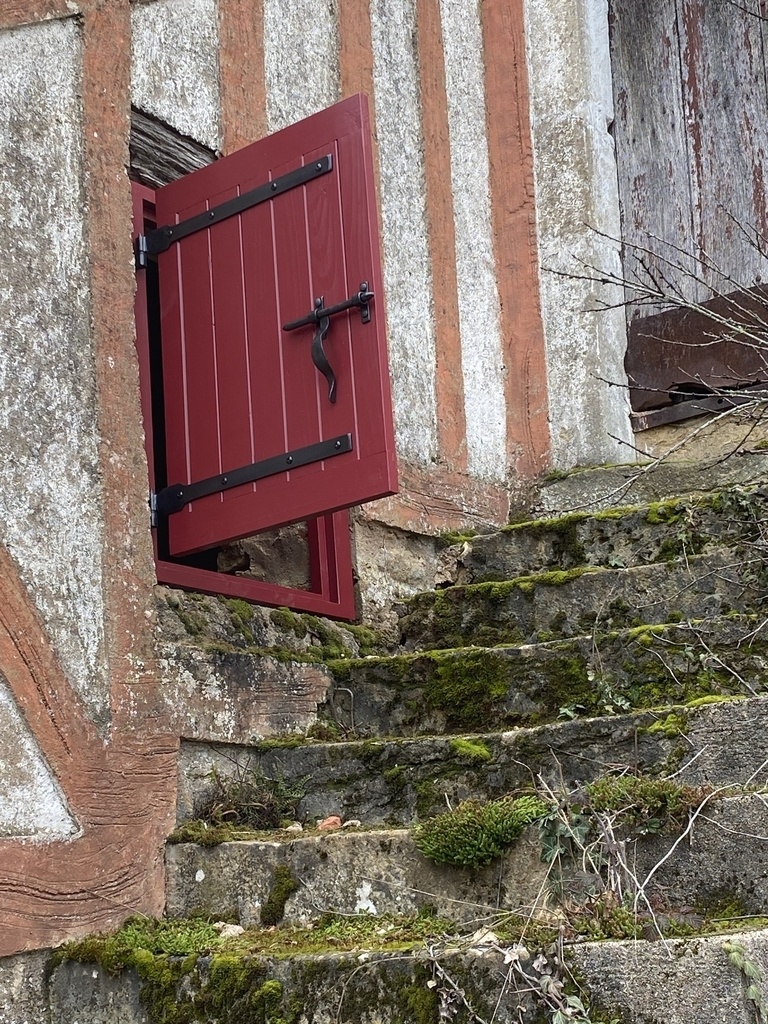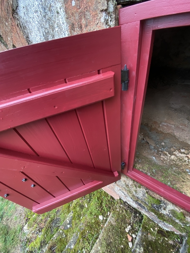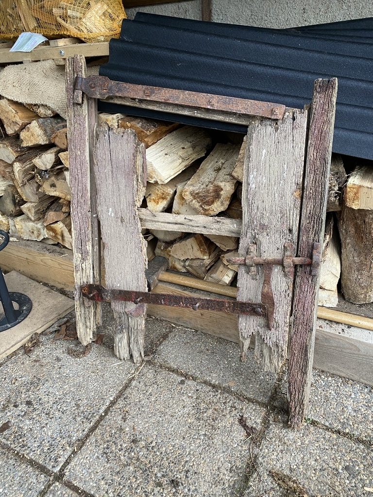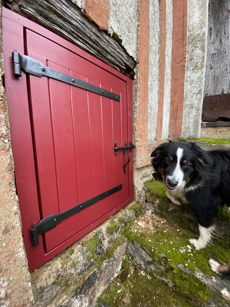 dans le cadre de la restauration ...de certains vieux bâtiment chez des amis, j'ai refabriqué cette petite porte de niche, non non, ce n'est pas pour ma petite chienne ...!
