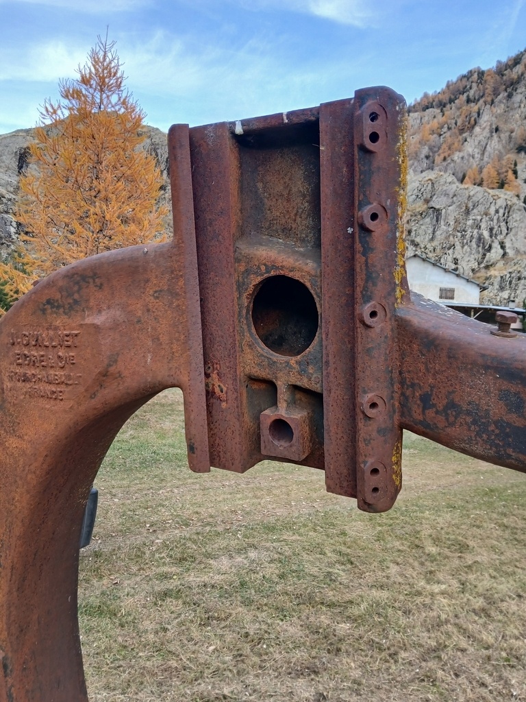 Voilà la scie à ruban abandonnée en montagne depuis 50 ans. J’ai pu retrouver plusieurs pièces. Avant de penser à une éventuelle rénovation il s'agit, avec votre aide de répertorier les pièces manquantes. Je n’ai aucune connaissance dans le domaine. Certaines pièces ont probablement été recouvertes par la végétation, d'autres jetées dans un tas de féraille au bout du champ. Y'a t’il des connaisseurs susceptibles de m’envoyer des photos ou une vue éclatée de l’ensemble pour faciliter mes recherches.