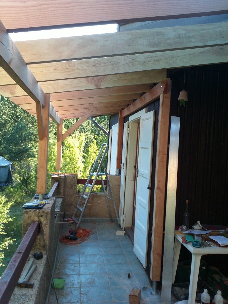 j'ai commandé a un ami scieur une bonne trentaine de madriers en 15*5 cm en douglas,pour realiser la totalité du projet:les poteaux,les pannes ,les chevrons porteurs et les entretoises.