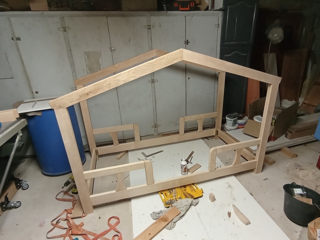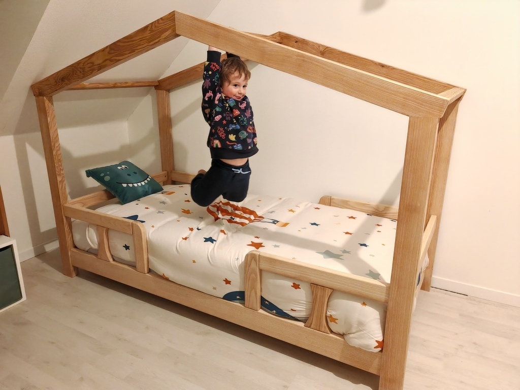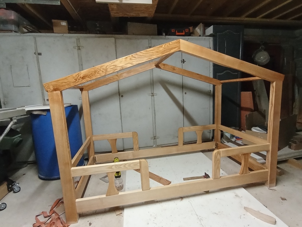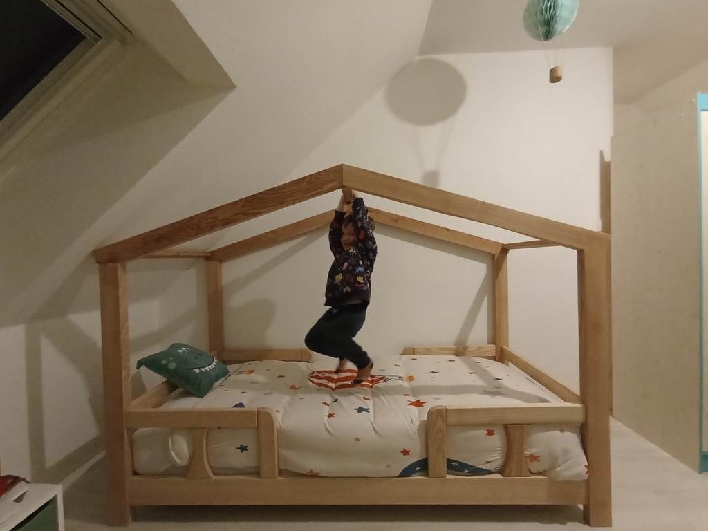 Comme mon fil grandit vite et que je n'ai pas vu le temps passer, il est maintenant à l'étroit dans son lit à barreaux, alors en bon mouton que je suis j'ai suivi la mode et me suis lancé dans la construction d'un lit cabane.