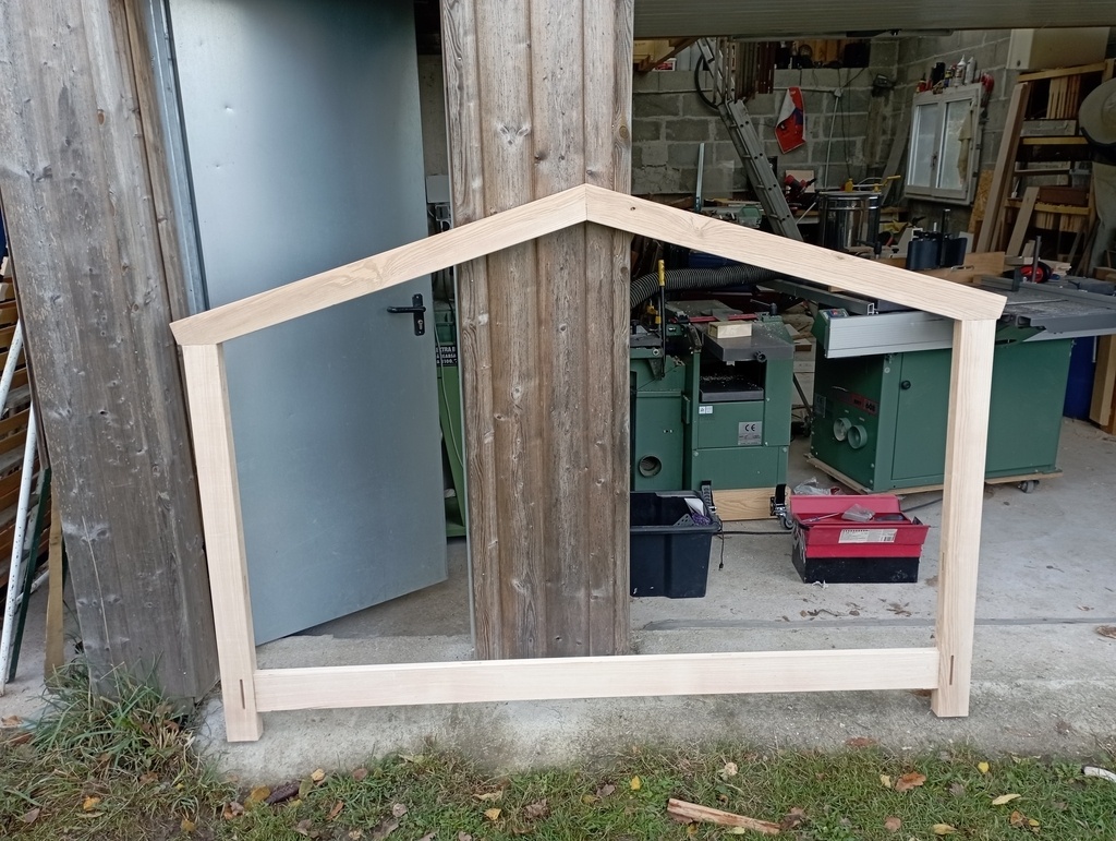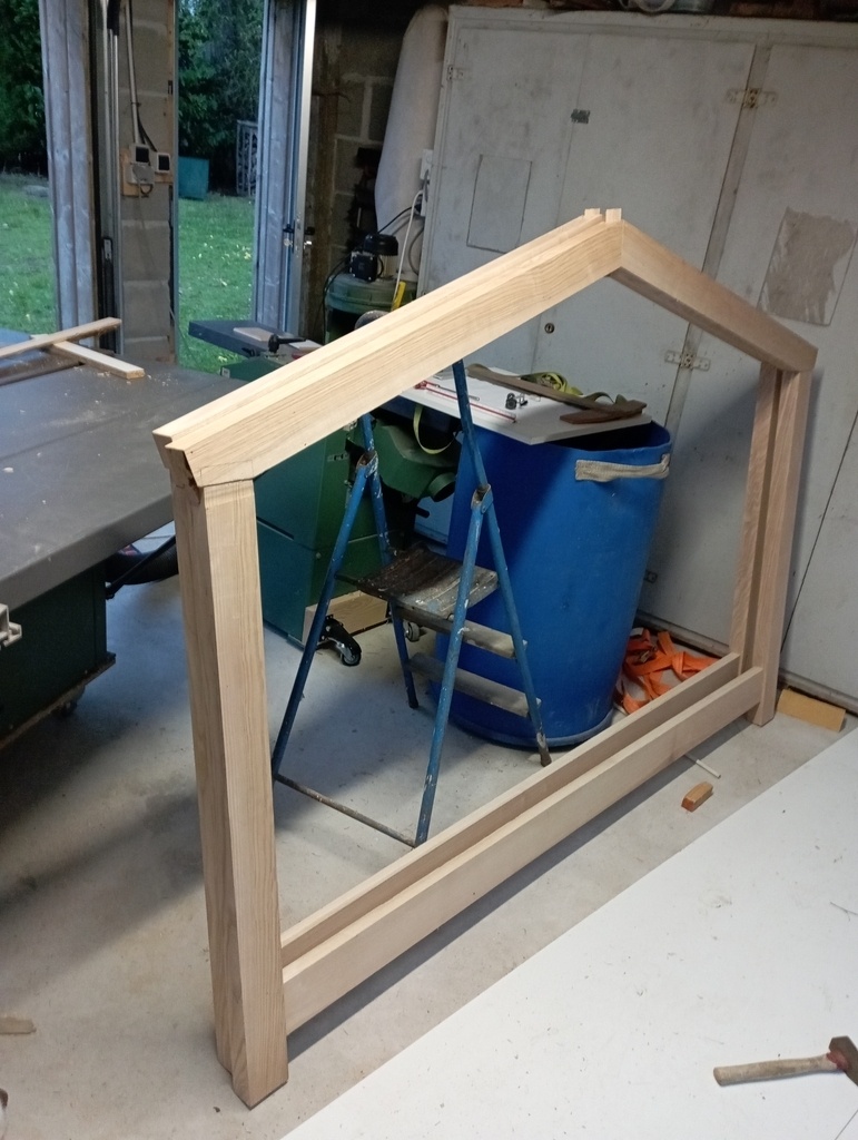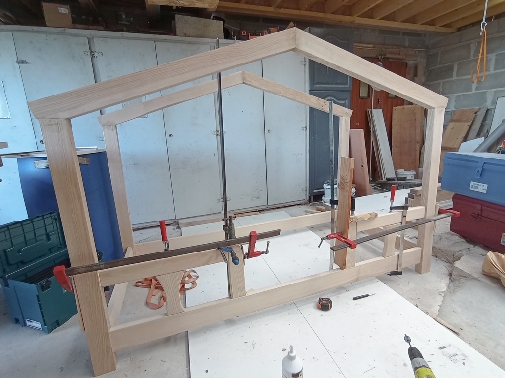 Ce premier assemblage me satisfait, mais une fois assemblé, catastrophe, je me rends compte que les montants prévus pour faire le "toit" sont trop courts!!
