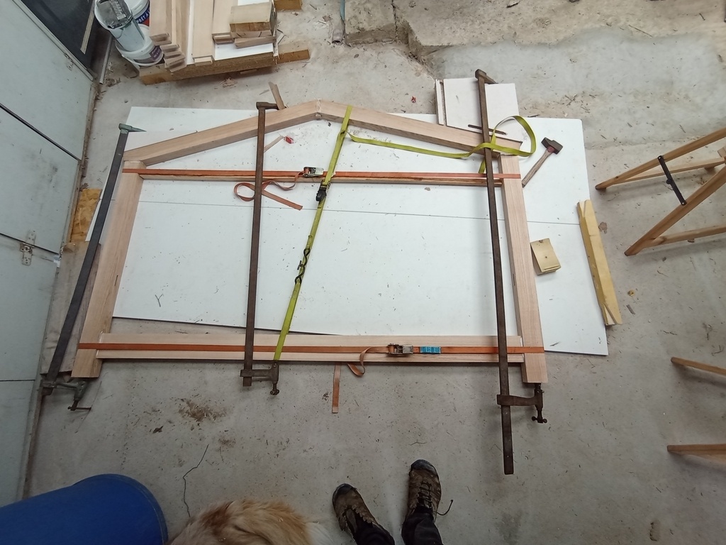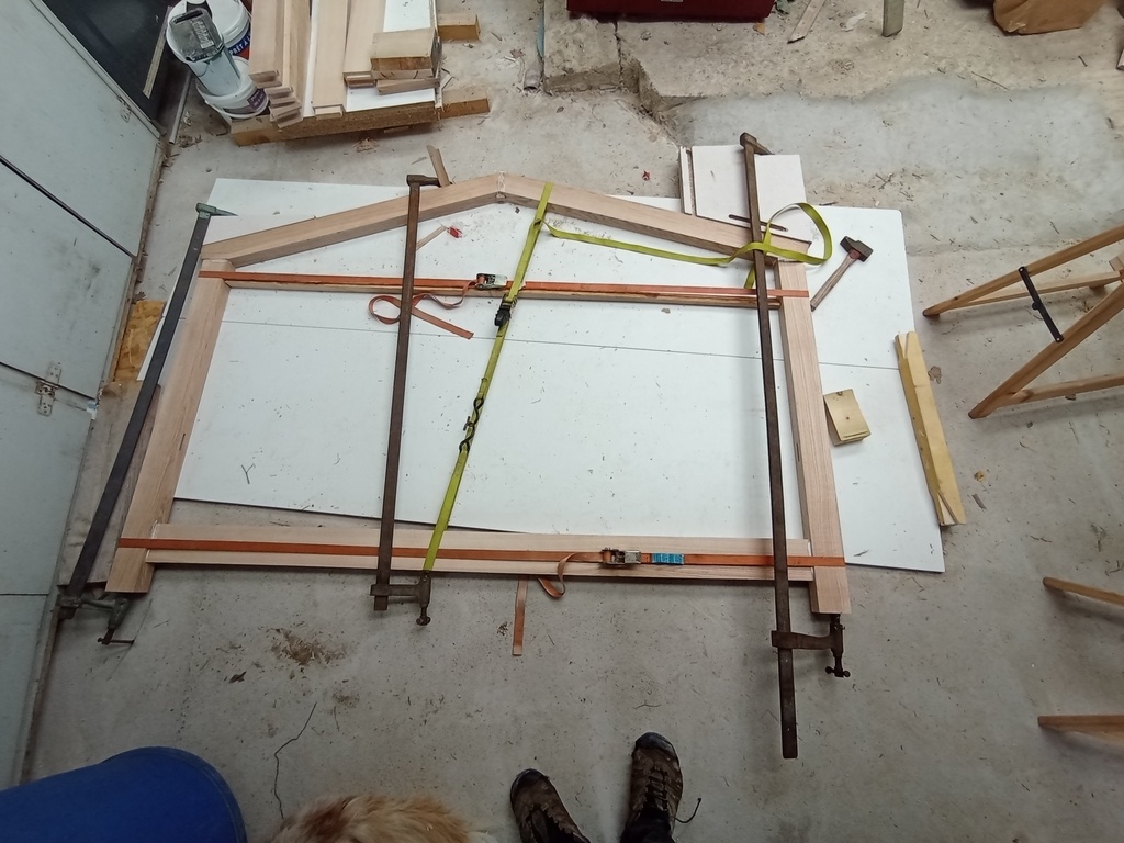 Encore une fois je ne suis pas équipé pour de tels morceaux, alors j'improvise des serre-joints à base de sangle.
