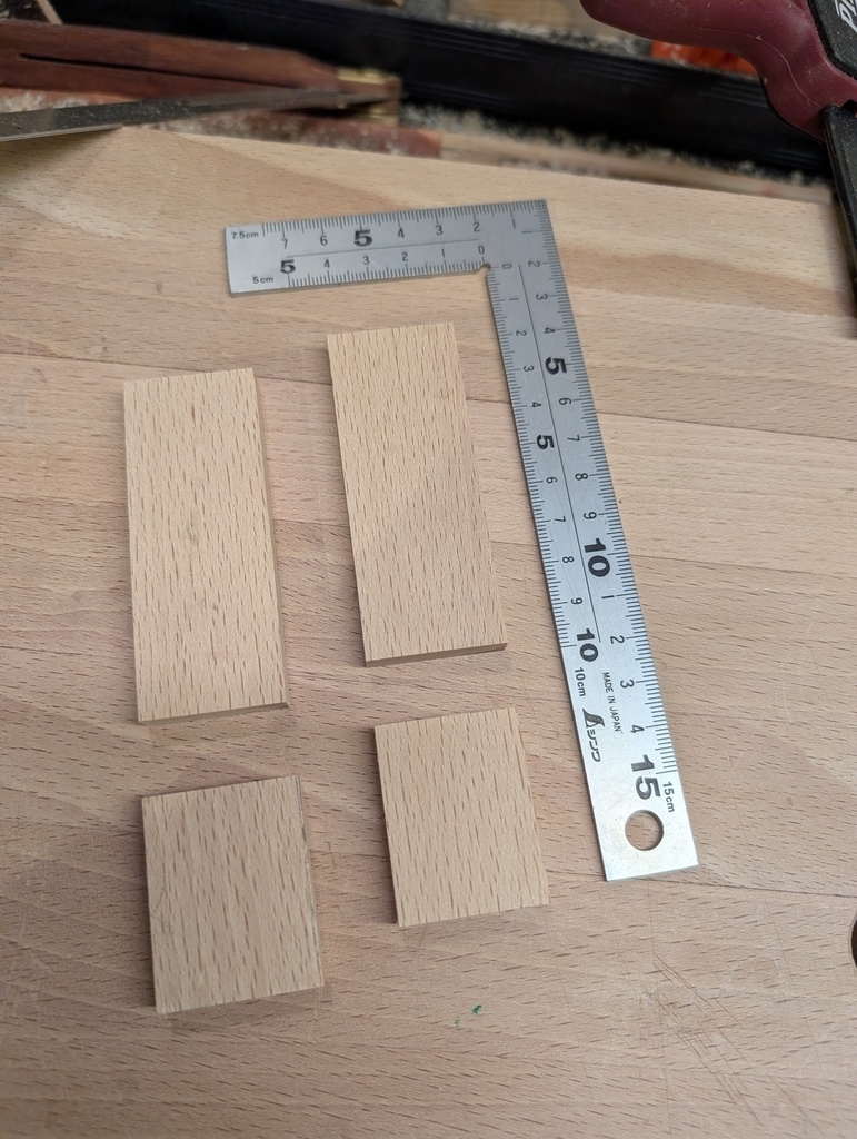 Pour les dominos, c'est facile, une planche de hêtre mise à dimension pile poil. L'avantage, c'est qu'on peut faire des dominos légèrement plus épais pour rattraper le jeu introduit par l'usinage...